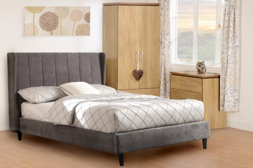Dark grey fabric winged 5ft king size bed