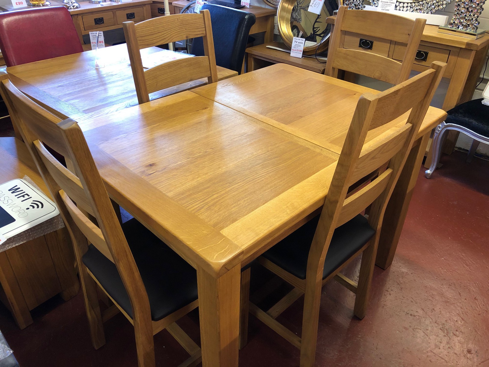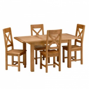 Erne oak compact 4ft extending dining table & 4 oak chairs