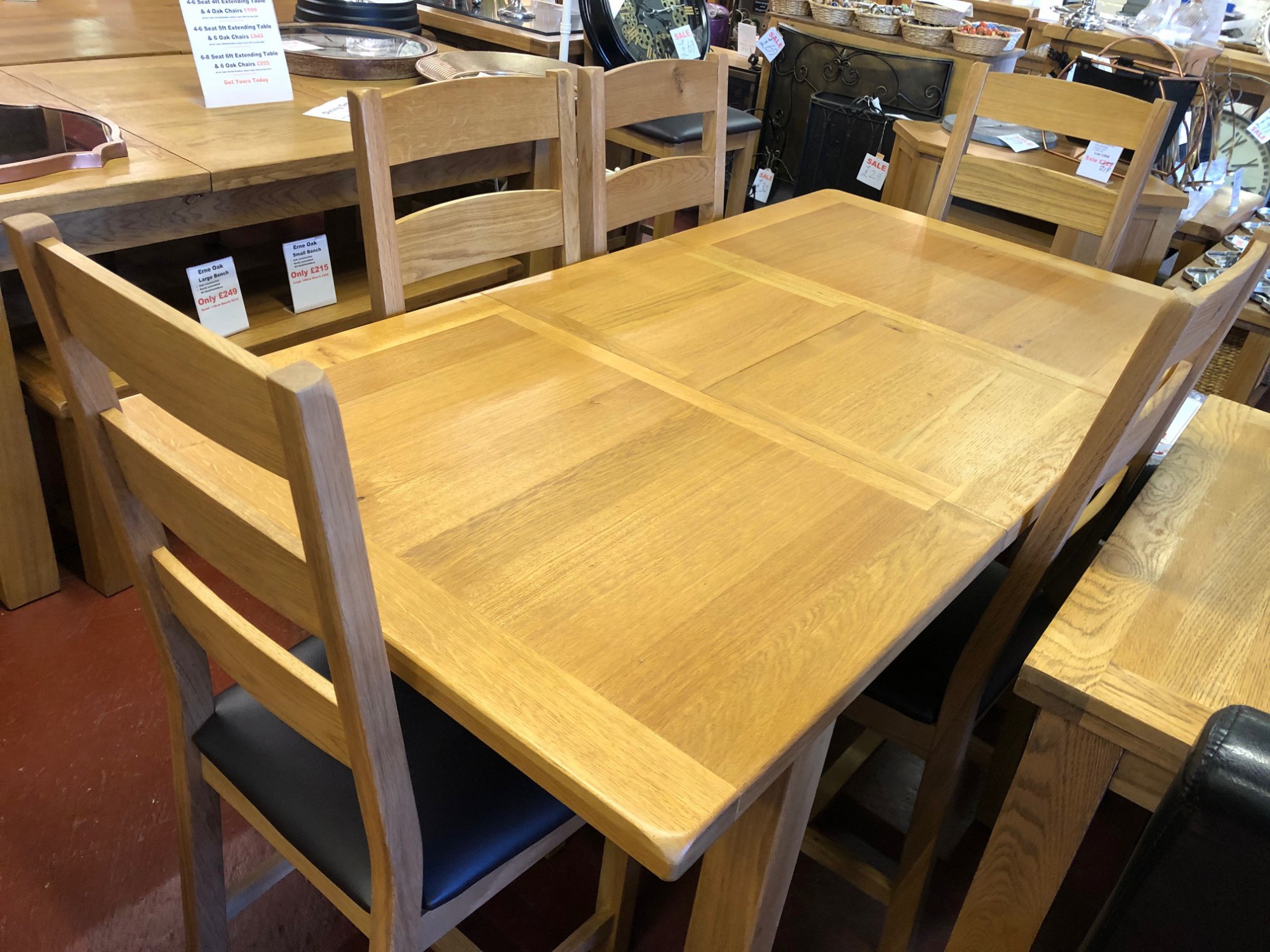 Erne oak small W150/200xD90xH80cm butterfly extending dining table & 6 oak chairs.