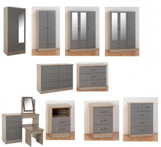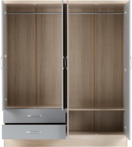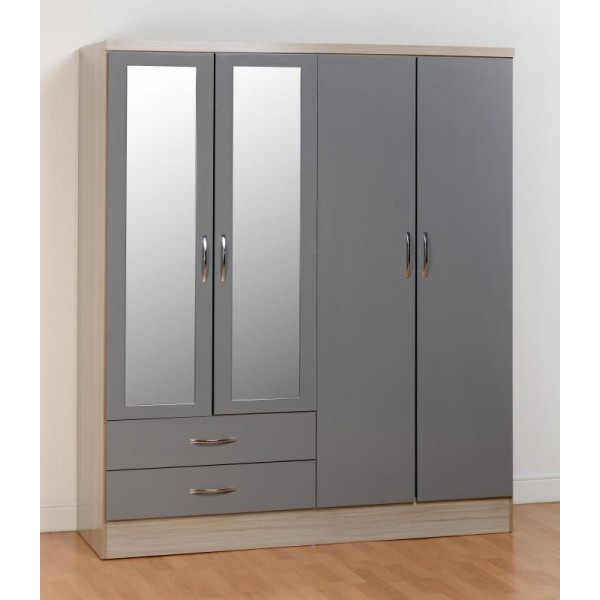 Neptune grey gloss 4 door 2 drawer mirrored wardrobe