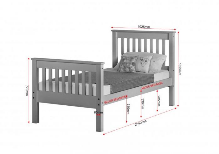 Neptune grey high foot single bed