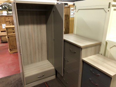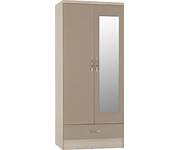 Neptune oyster gloss 2 door 1 drawer wardrobe with mirror W78xD52xH182cm