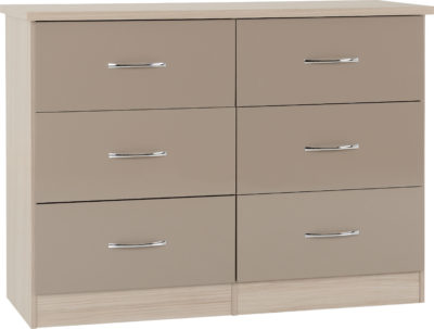 Neptune Oyster gloss 6 drawer wide chest of drawers