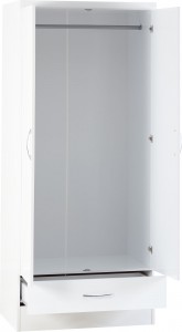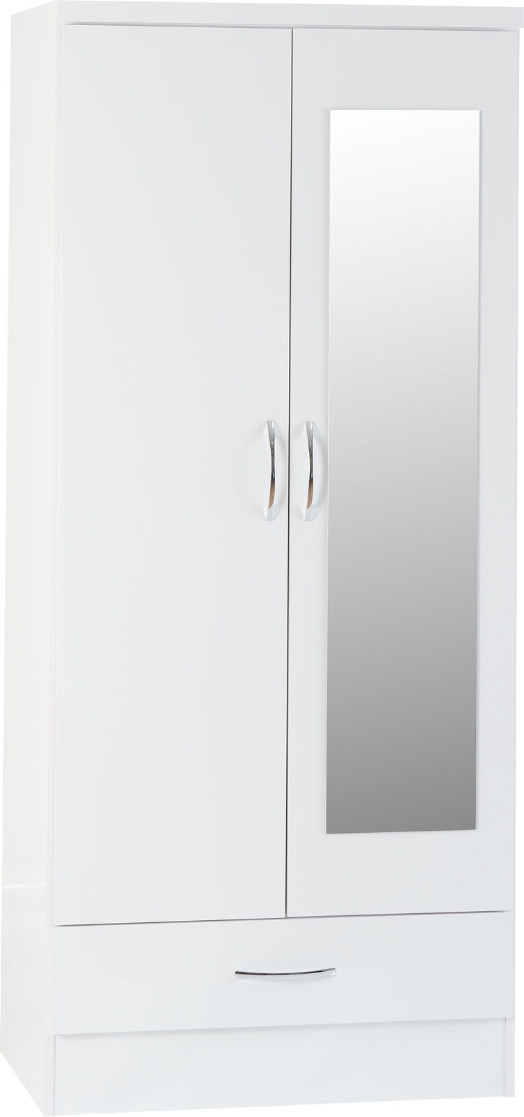 Neptune white gloss 2 door 1 drawer wardrobe with mirror W78xD52xH182cm