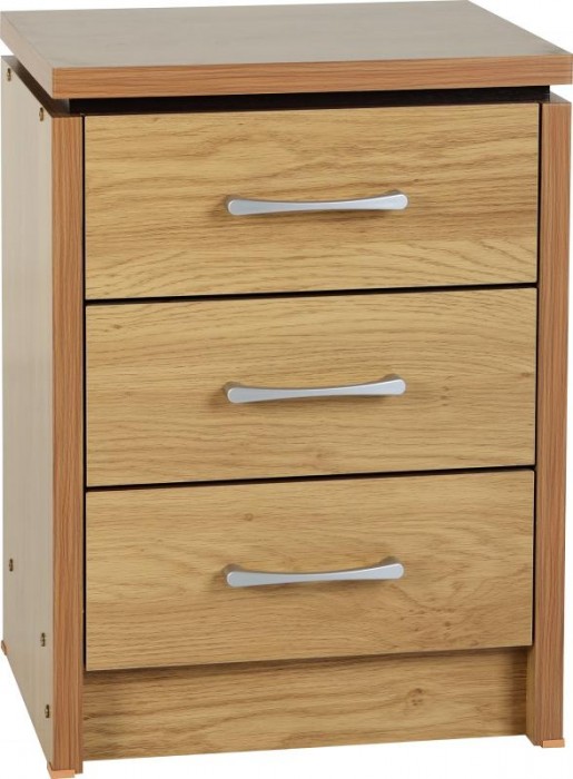 Carlos oak effect 3 drawer bedside